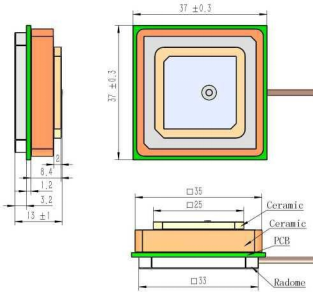 天线尺寸 Antenna size(mm) | 37*37*13 |